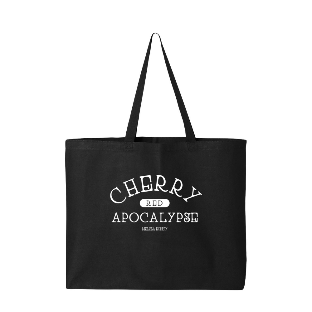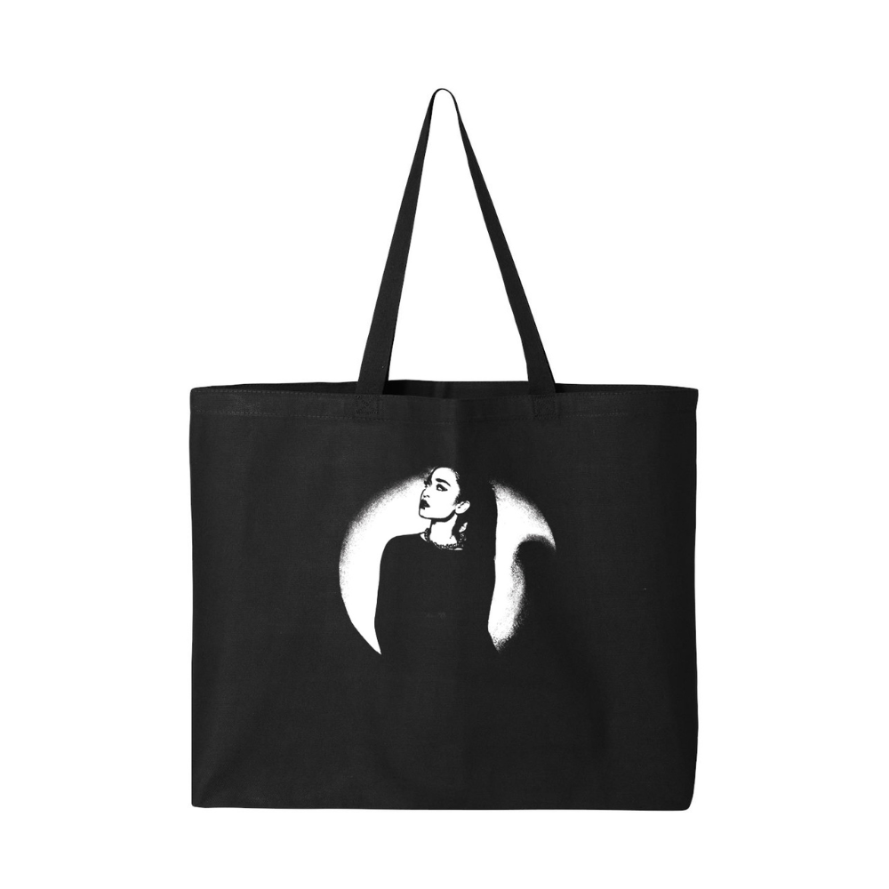 Melissa Bonny "Portrait" on a dark black tote bag